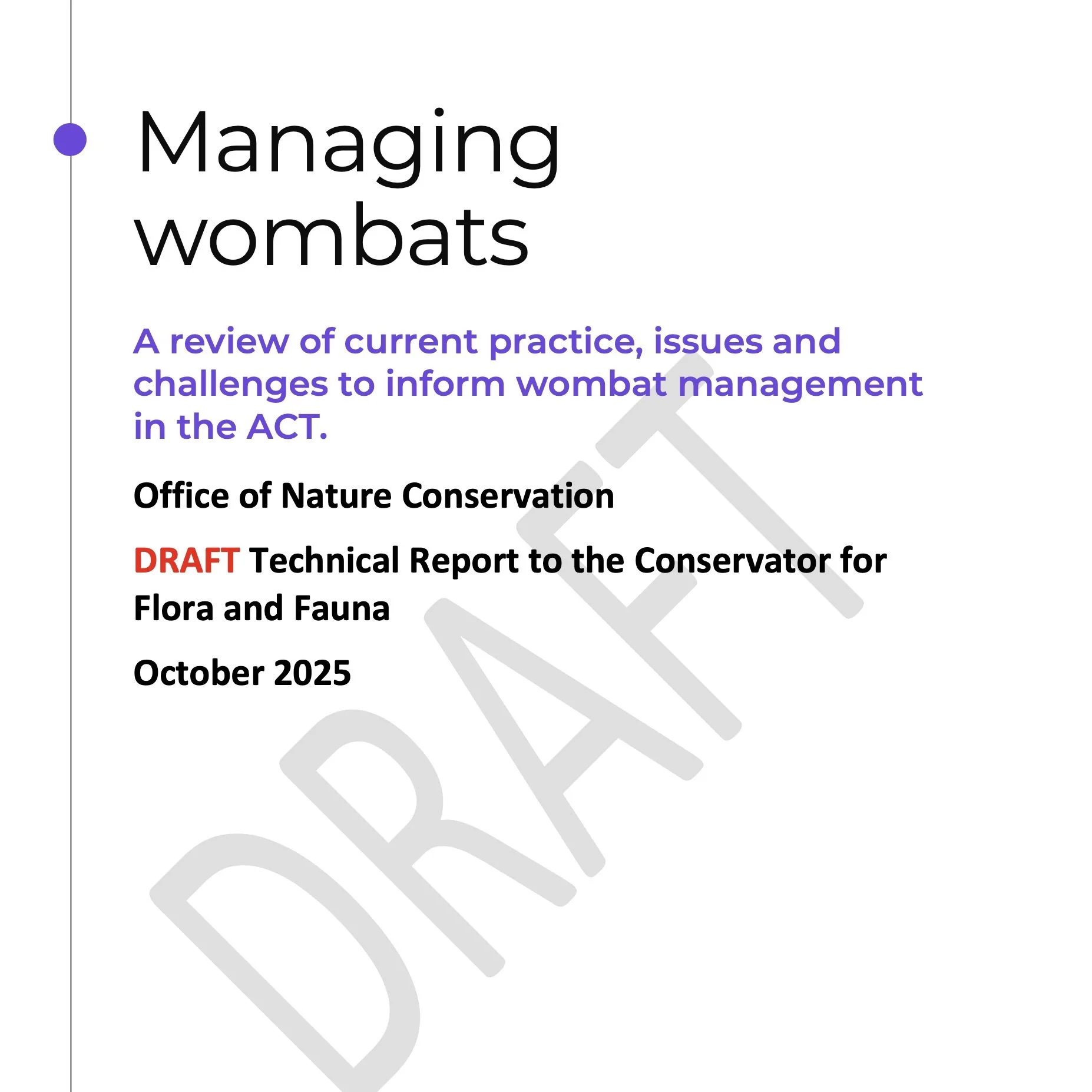 WPSA’s response to the draft Technical Report “Managing Wombats– a review of current practice, issues and challenges to inform wombat management in the ACT”